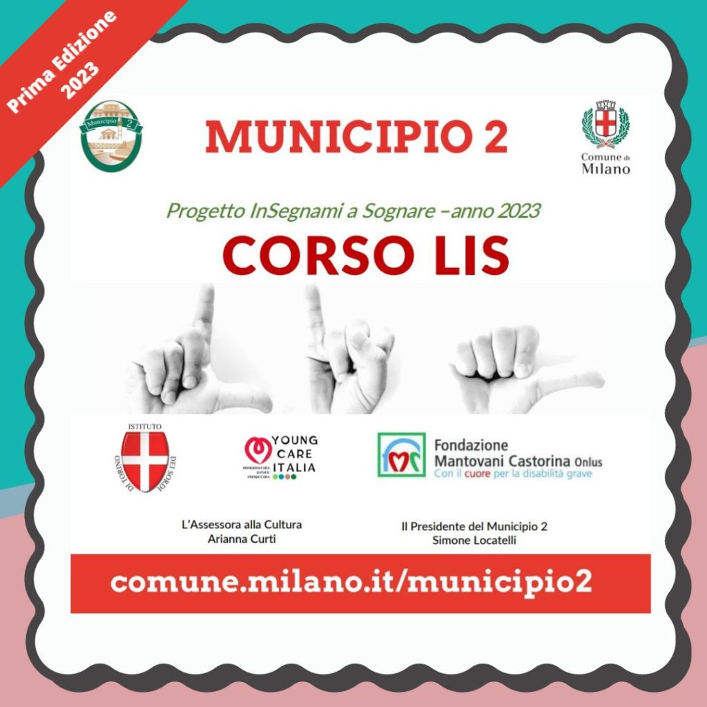 Il progetto “inSegnami a Sognare” è nato allo scopo di trasmettere alla comunità educante (insegnanti, famiglie, cittadini) le basi della LIS per far sì che il carico di cura rispetto alla barriera di comunicazione non pesi solo sulle famiglie (fratelli in particolare), ma diventi una responsabilità comune. Grazie al contributo del Municipio 2 è stato possibile avviare una pima edizione completamente gratuita per i partecipanti.